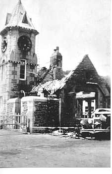 This picture was taken on Thursday June 28th 1940 just after the Germans had bombed the weighbridge at Guernsey. The weighbridge clock can still be seen.