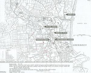 Target map dating from Aberdeen's biggest air raid, 21 April 1943. Bombers came from Denmark and south-west Norway. No advance warning was given through Enigma codebreaking. Dozens killed, many injured.
