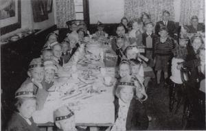 Victory Day Party at the Boat Inn, Priory Street, Old Lenton, Nottingham 1945. My brother John Wesley is second left, myself 6th up in the striped jumper, our cousin Keith Marriott and local children"