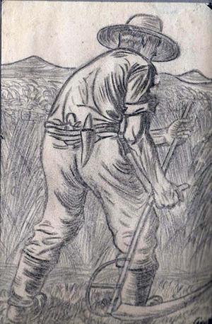 Sketch by George Beck - ‘The harvester at work’