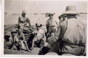 Chai Swindle ‘A’ flight at El Khanka left to right Joe Bratton, Grant, Ernie Dolly, ‘Butch’ Burdery, ‘Macnoxn Nobly’ Hall, Reynolds Abdul in the back ground ‘Split Pin’ Lewis, A.N.Other