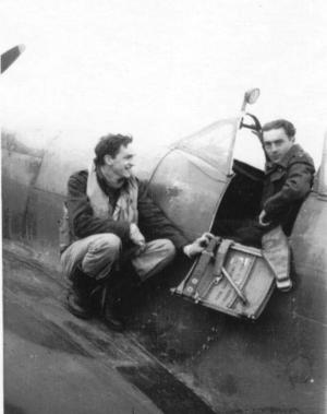 It was during this period that I had the remarkable good fortune to be able to meet up with my first cousin John Howarth, a fighter pilot in the Canadian Royal Air force. We had learned of each other being in Italy in letters from our folks back home. I learned that John was flying from an airstrip at the mouth of the Volturno river just north of Naples and given a day clear of work, with careful map reading and about a day’s drive, I managed to locate his base. When I arrived he wasn’t there; I found out from his HQ that he was on a mission in Northern Italy and later witnessed him fly in. We had much to talk about and I experienced a taste of what it was like to sit in the cockpit of a Spitfire (photo). John had been born and brought up in Canada and this was the first time that we had met since the early 1920’s when we were both toddlers in Canada. My parents returned to England after experiencing a few very tough years farming on the prairies. Years later John revealed to me that he was glad to be flying his Spitfire in contrast to the job of 7 Field Company which was far too dangerous for his liking!