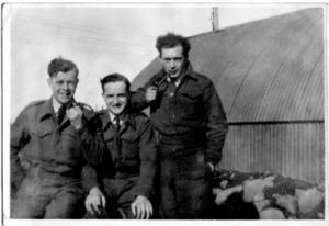 I was posted to (I think) Number 10 I.T.W. at Scarborough and arrived there in the middle of January 1942. If it was cold in London it was arctic in Scarborough. We were billeted in Boarding Houses, which had once held happy laughing holiday makers in the summers before the war, but had now been completely stripped of anything which might have been slightly comfortable. Each bare room had two or three iron bedsteads and on each bed there were three square mattresses filled with some straw-like substance and known as "biscuits", a pillow which had solidified into an unyielding lump and four damp blankets. This was officially known as your "bedspace" and within its dreary confines your kit had to be stacked and displayed with military precision. Three of the blankets were folded into a perfect oblong; one blanket was then folded lengthwise and wrapped exactly round the other three which were then squared up and positioned exactly in the centre at the head of the bed. Across the bed, four inches from the blankets, was laid your spare towel, which, of course, had to be spotless, and on the towel was placed your gleaming mug into which you put your fork on the left, your spoon in the middle and your knife on the right. The possibilities of something being slightly wrong were endless. We knew at the end of the afternoon session of lectures when we marched at the RAF pace of 140 paces to the minute back to our boarding house billets. As we came crashing to a halt and were stood at ease, the door of the house opposite opened and out came our flight sergeant. He had a slight limp and a sardonic smile and carried a piece of paper in his hand. In a Welsh accent, which I can hear even now, he would say, "Fatigues for tonight. Spoon not in the middle, 271 McArthur; ditto fork 121 Matthews, blankets not straight 146 Smith D." And so on until he had listed enough "janker wallahs" to peel the several hundredweight of potatoes that waited for us in the cookhouse. This was one of the more pleasant "fatigues", as we had endless cups of tea if the right cook was on duty and sometimes a real fried egg. Not so lucky were those polishing the dustbins, or whitewashing the kerb stones, or emptying the day’s swill from the remains of yesterday's food.