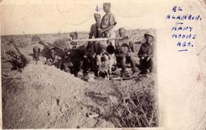 George Brown under the drawn arrow facing front. This is the gun team from El Alamein but the gun and some team members are the same.
