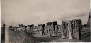 Hudson crashes into petrol dump in the act of taking off on a detachment prior to El Alemein. Photographs of the crash and the burial of the victims. Funeral — Bearing the coffins