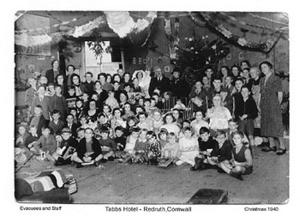Evacuees and staff at Tabbs Hotel in Redruth. Christmas 1940