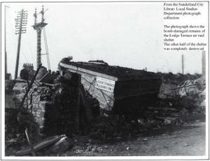 On that fateful morning, a quarter of a ton high explosive bomb dropped on the surface shelter in Lodge Terrace, Hendon, Sunderland during an intensive air raid. The bomb landed just outside the blast wall at the south-west corner of the shelter, causing devastating damage as it exploded, destroying the blast wall and completely demolishing the first two compartments of the shelter. The other compartments were badly damaged and the occupants killed, injured and trapped, although there were quite amazing escapes by some occupants.