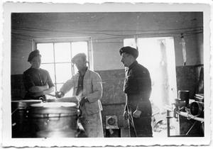 Photo of the company cooks I am afraid I cannot remember their names but I recall the sergeant cook was a wizard with the mincing machine