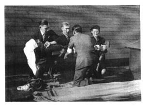 I joined the first aid course at the factory, the only equipment I had was a water bottle. So when an air-raid warning sounded during the day everyone went down to the basement for safety. When I look back, that basement was full of sheet tin hanging from the rafters and if a bomb had fallen anywhere near we would have been cut to ribbons.
