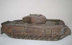 He also made a model tank that I still have. He told the family that it was made from bits and pieces of metal lying around the workshop. I seem to remember him saying that the wheels that operated the tracks were made from metal tunic-buttons, but the memories of a young child are questionable.