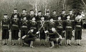 Thomas Arthur Russell on top row at end from left to right. Training at Trevol Camp. Class with instructors some left for Carrier Glorious after return to depot and went down with her after action in snowstorm off Norway where she was caught before she could fly planes off. Battleship Scharnhorst was the German ship involved.