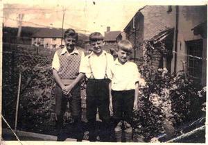 Maurice, Bryan and Ronald (The art brothers)Photograph taken in the back garden of house of Mr and Mrs Arnold, Evelyn Road, Lewes, Sussex in 1941