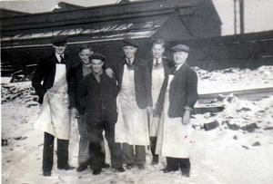 1939. Digging air raid shelters at Edger Allen & Co., Tinsley, Sheffield. A.E. Hoyland 2nd right.