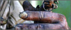 Their pursuers, you've no doubt guessed by now, are variations on the theme of 'Grotesque Redneck Freak' - three inbred, deformed grunters, identified in the credits as Saw-Tooth, One-Eye, and Three Finger.