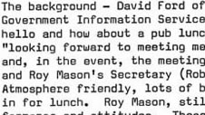 Memo from Tonight reporter Bernard Falk about conversation with Roy Mason, January 1978