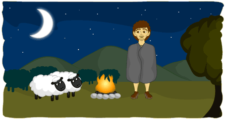 A haed tae lea tha sheep an rin awa frae ma maister an A felt quare an guilty aboot thon – but A kent A haed tae dae whut tha angel haed toul me. Leain ma weel-kent braes, A heidit aff tae fin tha boat that wud tak me hame. Tha mair A’d bin in Airlan fur sax yeir noo, A’d niver wannert ayont ma maister’s lans an A didnae ken tha kintrie - but God guide’t me an A wusnae feart o ocht ava.