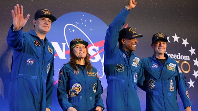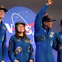 The four astronauts who flew in Nasa's Artemis II mission around the Moon have been welcomed back to Planet Earth at an event in Houston, Texas.