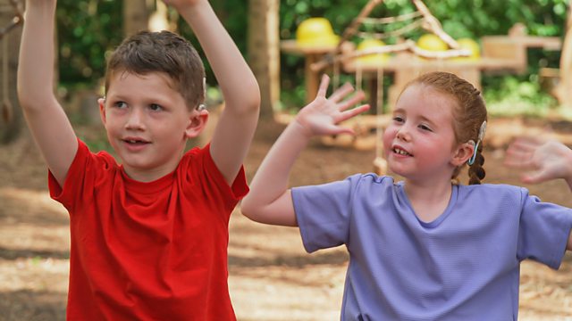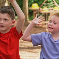 In Tall Trees Forest, Lisa and the children build block bridges, learn signs for London, bridge and falling down, and sing and sign London Bridge Is Falling Down.