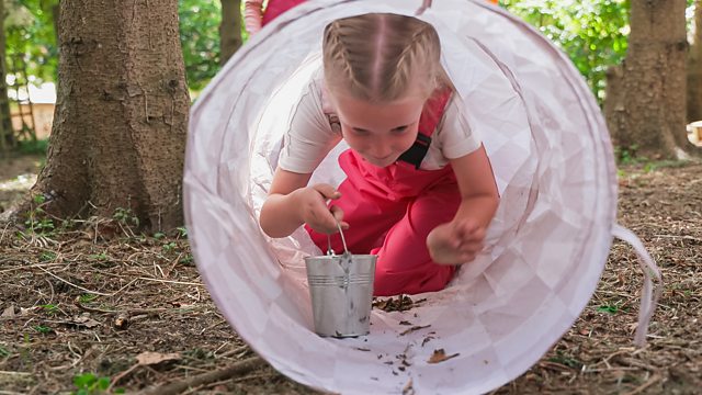 Lisa and the children balance buckets of water through an obstacle course, learn British Sign Language signs for up, water and fell down, then sing and sign Jack and Jill.