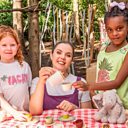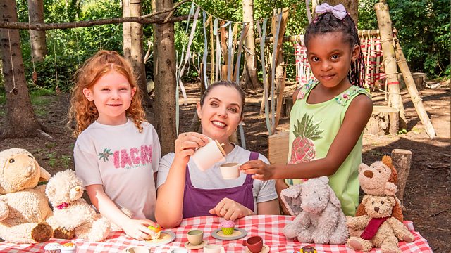 Lisa and the children share a teddy bears’ picnic with pretend buns and tea, learning British Sign Language signs for ship, soldier and jump, then sing and sign When I Was One I Ate a Bun.
