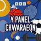 Dafydd Pritchard, Lowri Roberts a Rhodri Gomer sy'n trafod