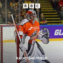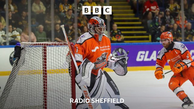 Sheffield Steelers netminder Matt Greenfield speaking to Peter Spencer, after their 6-0 win over Manchester Storm in the Playoff semi-final and recording his 25th shutout for the club.