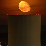 (Photo: The moon rises over a power plant reactor near Herten, Germany, 07 April 2026. As the moon rises over Germany, the Artemis II crew is orbiting the moon in the Orion capsule; Credit: Christopher Neundorf/EPA/Shutterstock)