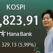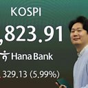 (Photo: A financial data screen in a dealing room of Hana Bank in South Korea. Credit:Yonhap/EPA)