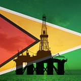 (Image: Oil platform on the background of Guyana flag. Credit: Anton Petrus/Getty Images)