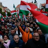 (Photo: People waving Hungarian flags as they attend an election campaign rally in Szekesfehervar, Hungary, April 10, 2026. Credit: Reuters/Leonhard Foeger).