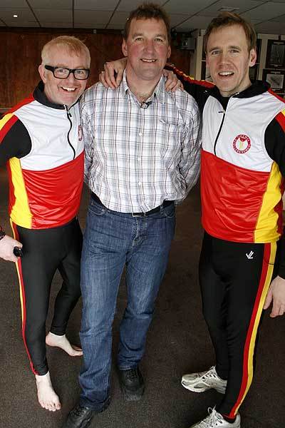 A knight between two thorns (l - r: Chris Evans, Sir Matthew Pinsent and Jonny Saunders)