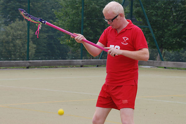 Chris gets to grips with his stick, if not quite the art of catching the ball in it