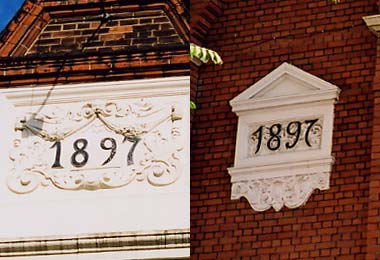 The dates on the Horseshoe pub (left) and the Guinness Trust buildings (right)