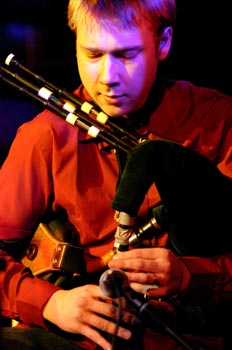 Salsa Celtica's Fraser Fifield with pipes bring the distinctive Celtic sound to their music (© and courtesy of Philip Ryalls)