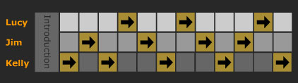 |  |  |  |  |  | |  This grid shows which character's perspective received most votes from listeners in each of the voting sections while the drama was being broadcast. Please note: the bar graph figures have now been confirmed and amended from the ones displayed earlier. |  |  |
