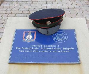 The plinth at the memorial to the Church Lads' Brigade at the National Memorial Arboretum in Staffordshire and the Brigade's cap.