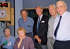 | seated l-r: Mary Goldring, Sue MacGregor; standing l-r John Cochrane, John Allen, Tony Benn, Raymond Baxter |