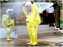 This programme has learned that leaks are still causing problems in some biochemical suits worn by accident and emergency staff in the event of a terrorist attack. The fault, caused in the manufacturing process, was raised last year. Modifications were being made to existing suits but the Health Minister John Hutton admitted they're still some months away from solving the problem despite the heightened awareness right now.