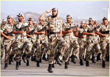 Saudi Arabian soldiers parade in front of ministers