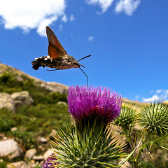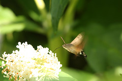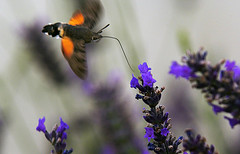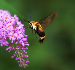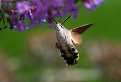 Humming-bird Hawk-moths are amazing animals, which hover like tiny hummingbirds to drink nectar from flowers. They migrate to Britain from North Africa and southern Europe in May and June. They are able to breed here during the summer months but traditionally have not been able to survive our winters. This is changing and the Humming-bird Hawk-moth is an excellent indicator of the effects of climate change on our native wildlife