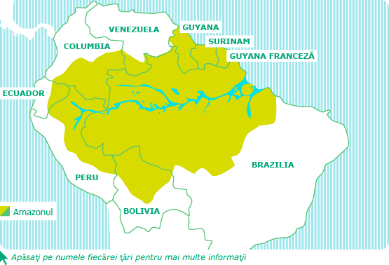 Amazonul găzduieşte nenumărate specii de animale şi plante – aproape un sfert din numărul de specii de pe pământ. Cu o lungime de 6400 de km, fluviul Amazon este al doilea ca lungime din lume şi apele lui constituie o cincime din toată apa dulce din lume.