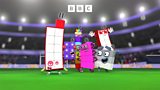 The Numberblocks make a new friend, football fan Eleven.(R)