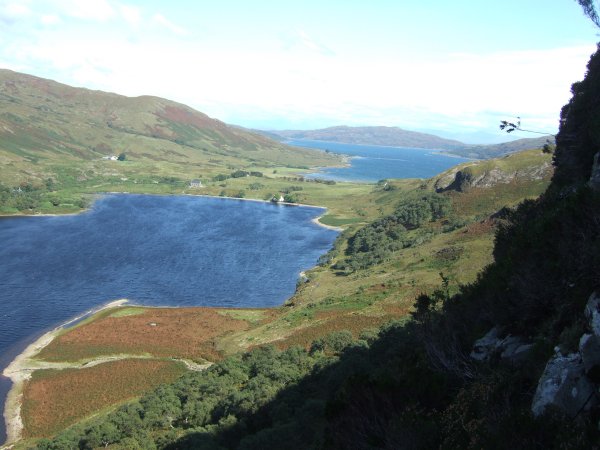 In my previous blog entry, I mentioned a little hill called Cruach Doire nan Cuilean , near Kinloch and how the views were good from it. Anyway, I didnt have time to go to the top, but the lower point is called Caigeann Doire nan Cuilean That's where I took a stroll. Caigeann is a great Gaelic word - it can mean a couple, a pair, as in yoked beasts, or a rough mountain pass, as in this case. One of my Gaelic tutors used to be very fond of it. I believe that in Tiree it is used to mean "a few"