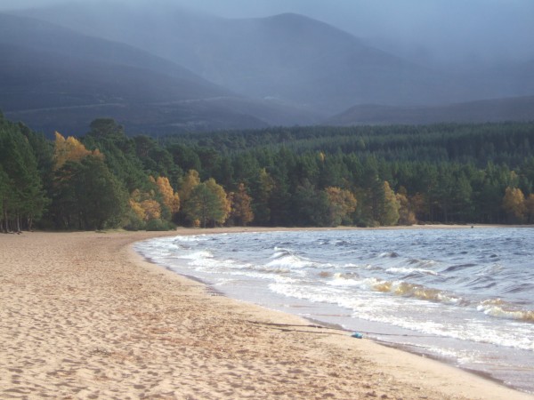I spent a bit of time on the shore of Loch Morlich - always a favourite place - native pine forest and the high corries of the Northern Cairngorms behind. However, the wind was so strong that the loch looked more like the sea than an inland stretch of water...