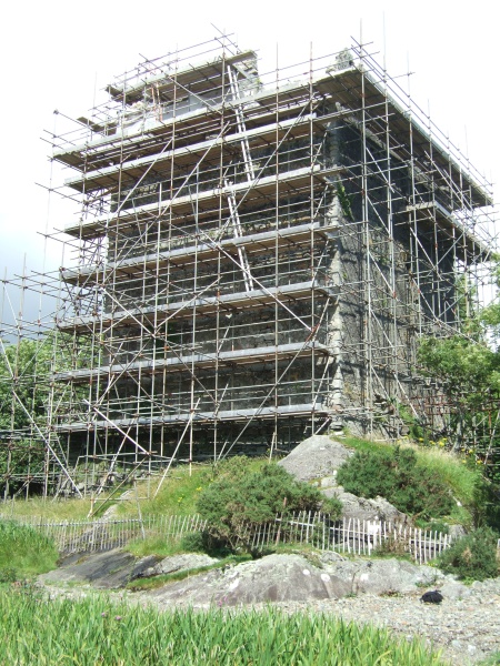 Moy Castle, covered in scaffolding as restoration work continues