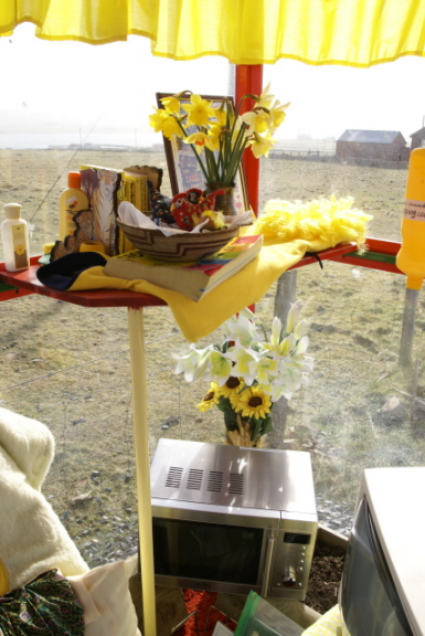 The Unst Bus Shelter (we have more than one bus shelter in Unst but this one deserves the definite article) is known locally as Bobby's Bus Shelter. It is one of Unst's premier visitor attractions, and the visitor book is well worth a read, usually studded with the witty comments of many well travelled tourists. Frequently throught the summer months you can see people posing inside for a photo that will bring back memories of Unst's quirky sense of humour.