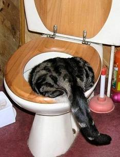 Looking at Donald's catalogue too intently has affected your eyesight Calum. It's the Cat in the Mask, not the Bear in the Basque (both from the Teuchters' Titillating Tartan Toys range). The cat enjoying time off in loo in the other snap inspired a first draft poem by TWS Eliot - Maclavatory the Mystery Cat.