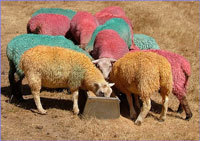 Anne (all things in moderation at IBHQ) set me thinking with her report about the pink rabbits. I was wondering whether feeding our sheep a diet of marag and mustard would produce Macleod of Lewis tartan on the hoof.
