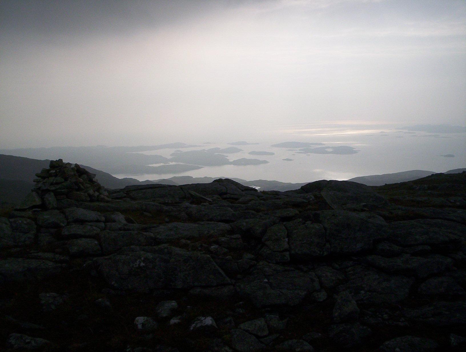 This was taken on an early afternoon a couple of weeks ago. There is a cairn. It is one of a line of cairns leading from then top of Trollamul to the big cairn at the top of the path then along the ridge to Beinn a' Chaolais. Tha e math a bhi a' cluinntinn bhuat.