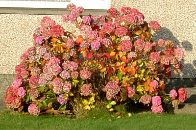 this gorgeous hydrangea in a garden, I just love the colours the flowers and leaves are turning,